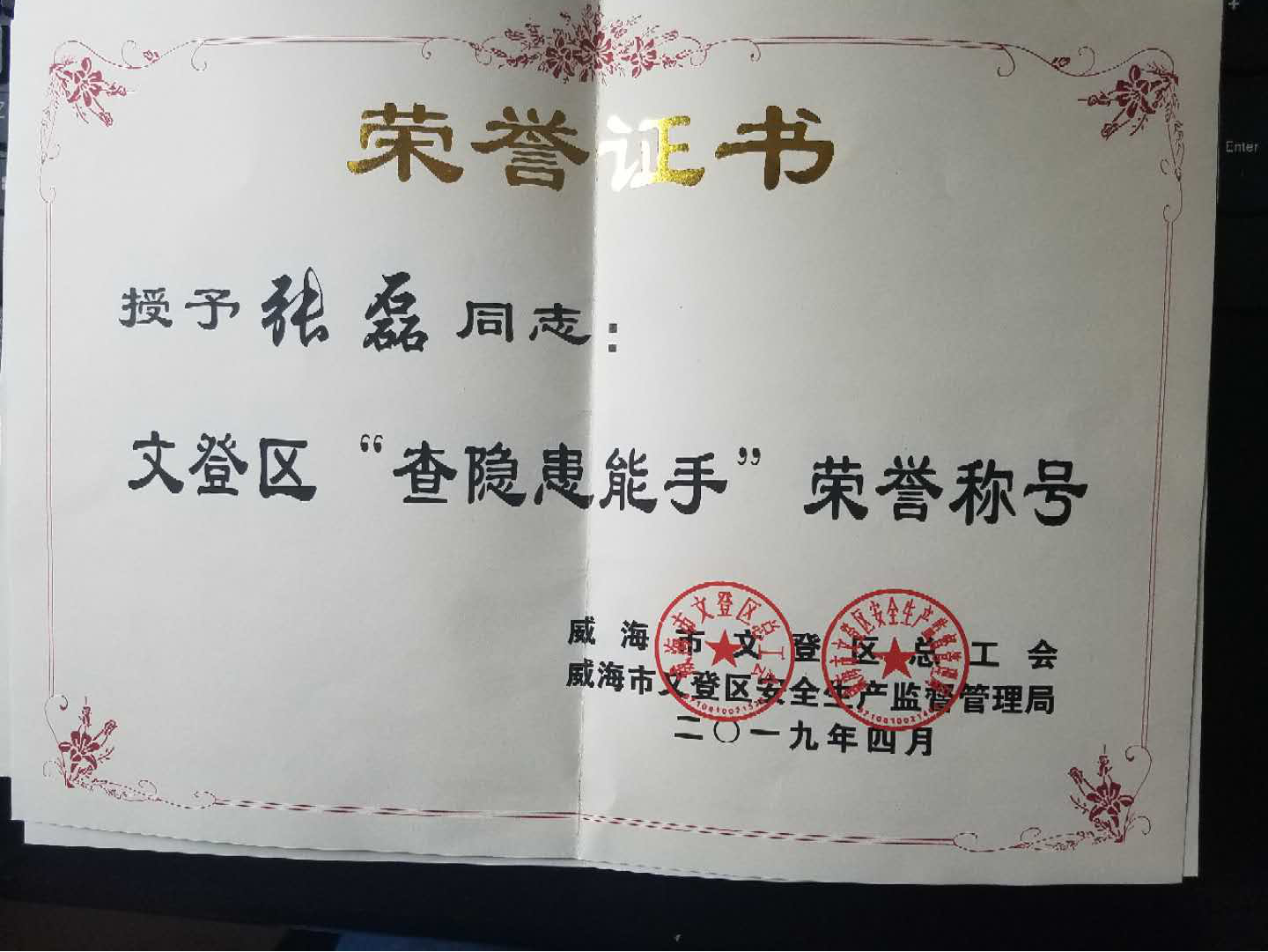 In the morning of April 28, 2019, the award ceremony of the “Wendeng District Checking environmental protection and Promoting Safty and Healthy Competition” and the “Wendeng District Vigorous Union and Wendeng District Outstanding Staff” were jointly sponsored by Weihai Wendeng District General Union and Weihai Wendeng District Safety Production Supervision Administration held in Wendeng District General Union. Weihai Baolong was awarded the title of “Advanced Unit of Wendeng District Checking environmental protection and Promoting Safty and Healthy Competition “ and the “Vigour Basic Union” in Wendeng District. The director of the Casting and Forging Factory Xiang Keyang won the title of “Excellent Staff” and the security officer Liu Sicheng, Zhang Lei, and Hu Anhong won the honorary title of “Experts of checking hidden dangers” in Wendeng District.