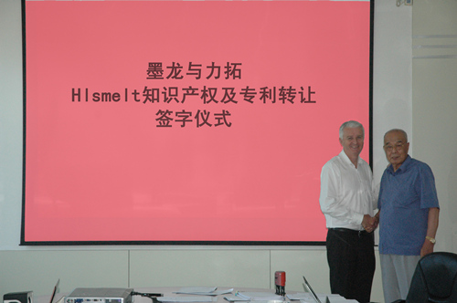Hismelt工藝由力拓集團歷時三十多年開發(fā)完成,是冶金行業(yè)的革命性技術,該技術摒棄了傳統(tǒng)高爐工藝的煉焦與燒結工序,直接利用鐵礦粉與非焦煤進行鐵水的冶煉,從工藝流程上上解決了傳統(tǒng)鋼鐵行業(yè)高汙染的問題。並且,由於該工藝是壹種完全不同的新技術,其生產的鐵水具有低磷、低矽以及基本無五害元素的特點,其市場前景非常廣闊。相關協議簽訂完成後,墨龍技術人員將抓緊開展對Hismelt工藝相關技術的消化吸收,從而為羊口Hismelt工廠的進壹步穩(wěn)定達產提供幫助。後期,墨龍將依靠該技術,在全國乃至全球範圍內進行Hismelt的技術推廣及技術支持工作,從而推動集團公司的轉型升級,促進企業(yè)的長遠發(fā)展。同時,Hismelt技術的完全引進,也展示了山東墨龍進壹步響應國家制造業(yè)轉型升級以及市委政府節(jié)能環(huán)保號召的能力與決心!