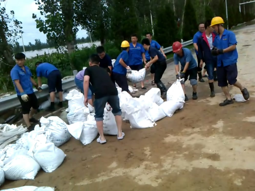 我公司接到通知后,迅速組織起40多人的志愿搶險(xiǎn)隊(duì)伍,聯(lián)系車輛一起趕赴口子村參與救援。到達(dá)現(xiàn)場后,積極服從上口政府領(lǐng)導(dǎo)安排,沿途值守,并在泥沙和沙袋送達(dá)后開始裝填沙袋、堆堵到泄漏口處。從上午十點(diǎn)半一直到下午三點(diǎn),我公司志愿者們連飯都來不及吃,全力以赴參與到搶險(xiǎn)工作中。