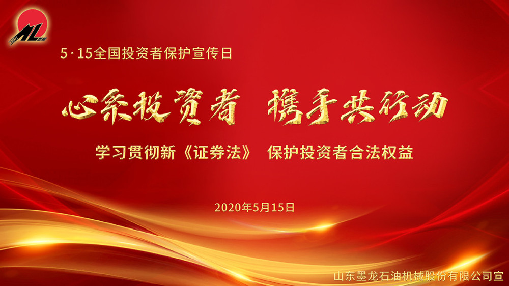 為做好“5.15全國投資者保護(hù)宣傳日”的投資者保護(hù)宣傳,山東墨龍(002490)積極響應(yīng)山東證監(jiān)局號召,以“心系投資者,攜手共行動—學(xué)習(xí)貫徹新《證券法》,保護(hù)投資者合法權(quán)益”為活動主題,開展投資者保護(hù)宣傳活動。公司將持續(xù)加強(qiáng)公司信息披露質(zhì)量、增加公司透明度,積極開展投資者互動溝通工作,營造良好的投資者關(guān)系氛圍,增進(jìn)投資者對上市公司的了解,全方位引導(dǎo)投資者樹立正確投資理念,更好地維護(hù)投資者的合法權(quán)益。